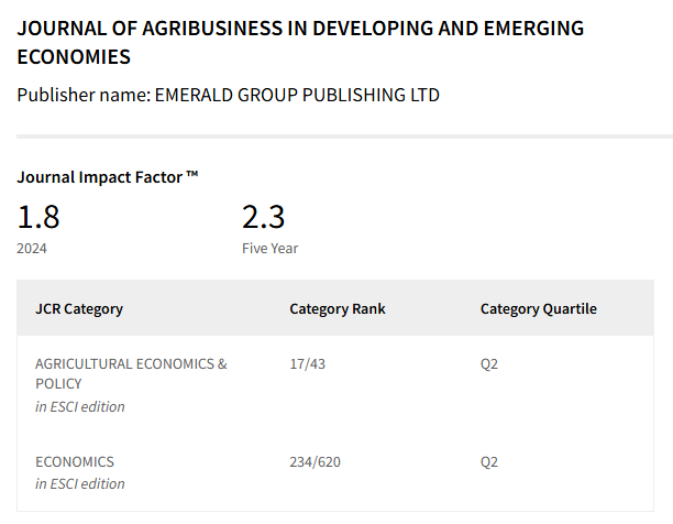 Naše kolegyne, Ing. Dominika Gajdošíková, PhD. a doc. Ing. Katarína Valášková, PhD., zaznamenali ďalší vedecký úspech v medzinárodnej vedeckej komunite. Ich spoločný článok Firm characteristics and debt structure in Slovak agricultural enterprises: implications for financial policy and rural development bol prijatý na publikovanie v renomovanom časopise Journal of Agribusiness in Developing and Emerging Economies vydavateľstva Emerald. Autorkám srdečne gratulujeme a prajeme veľa ďalších vedeckých úspechov. Článok je možné nájsť: https://www.emerald.com/jadee/article/doi/10.1108/JADEE-08-2025-0374/1345448/Firm-characteristics-and-debt-structure-in-Slovak