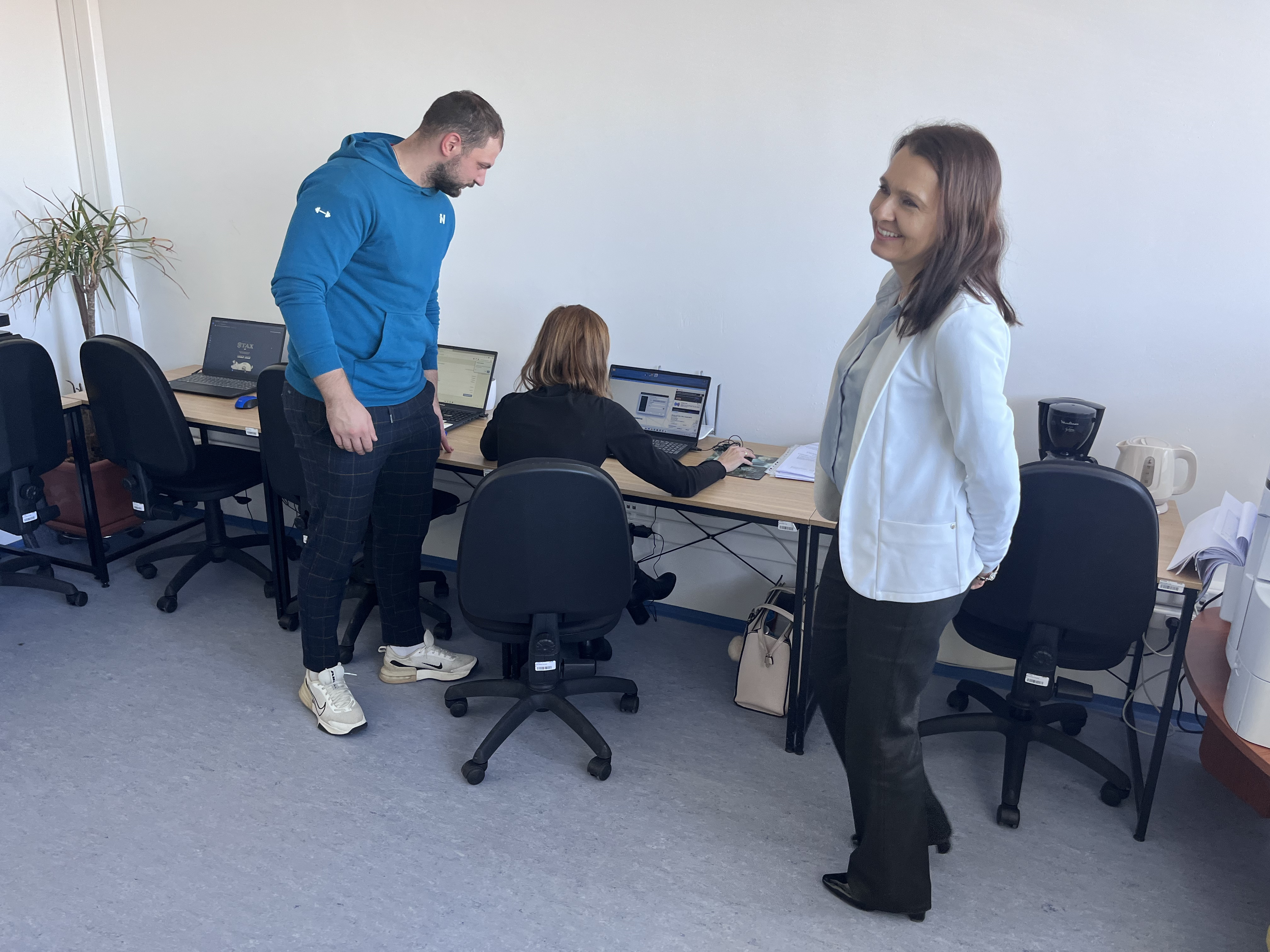 Za KE sa pri stánku počas celého dopoludnia venovali návštevníkom Ing. Roman Blažek, PhD., Ing. Dominika Gajdošíková, PhD. a Ing. Denis Juračka. Ochotne vysvetľovali, ako sa na katedre prepája prax s teóriou, a zdieľali vlastné skúsenosti z projektov i spolupráce s firmami.